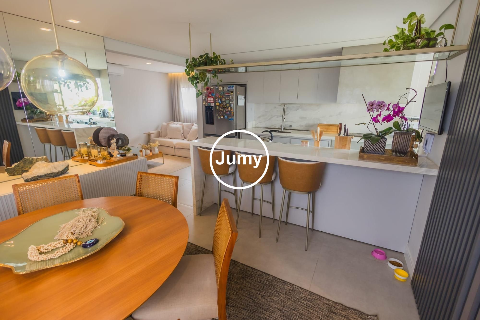 O imóvel possuí cozinha americana, toda equipada com móveis planejados de excelente qualidade, sala de estar e jantar, terraço gourmet com jacuzzi, três (03) dormitórios sendo uma (01) suíte, três (03) banheiros sendo um (01) lavabo, dois (02) closets, área de serviço e duas (02) vagas de garagem.