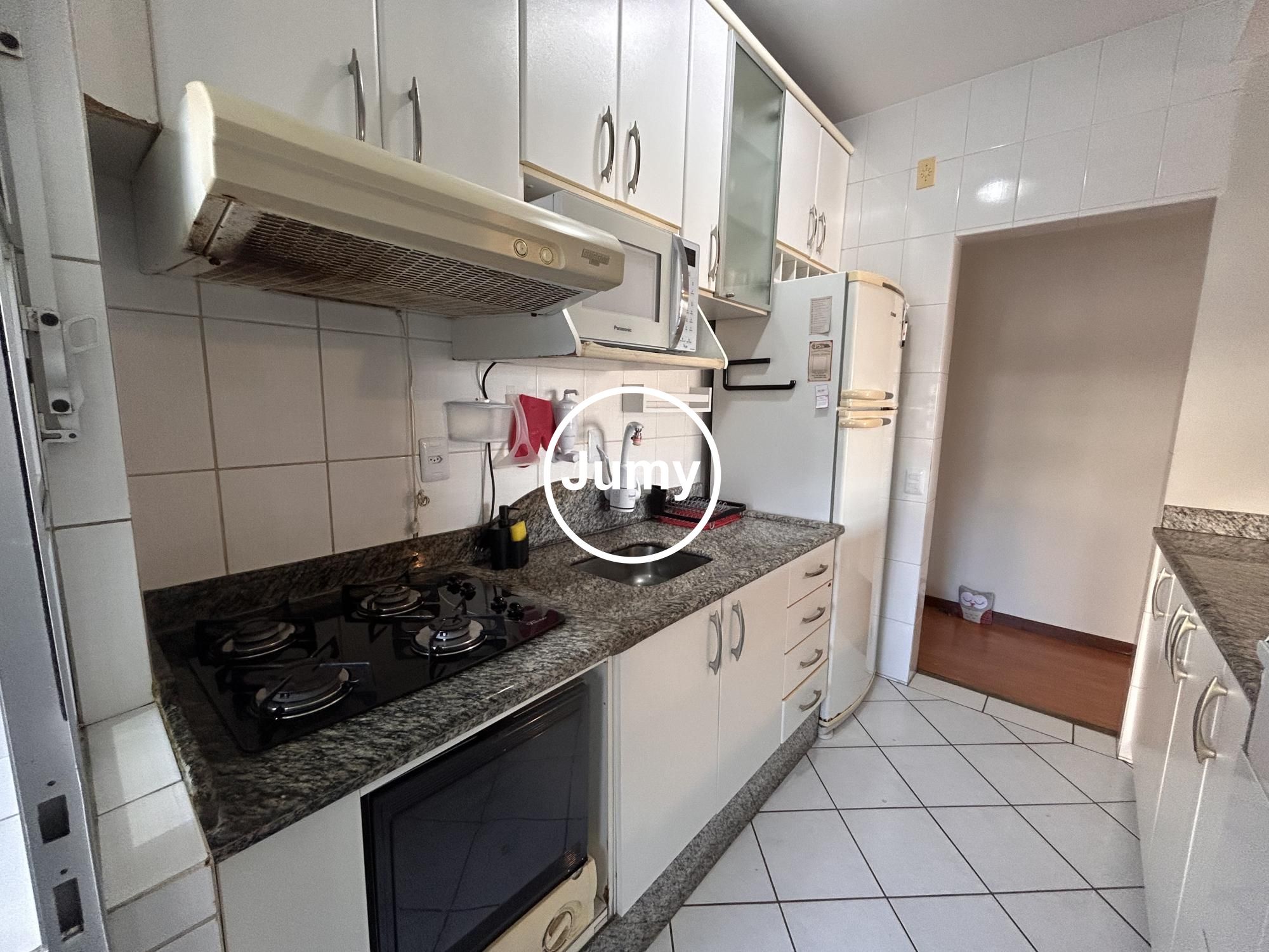 O imóvel fica em um andar alto, bem sossegado, nos fundos, com ótima posição solar, face norte. E dispõe de uma linda vista panorâmica e livre da sacada, e dos 3 quartos, sala de estar integrada com a de jantar e a cozinha planejada e equipada, com eletrodomésticos: lava louça, micro-ondas, forno, fogão e geladeira, lavanderia separada com maquina de lavar, despensa, possui três (03) dormitórios, (01) banheiro social, (01) uma suíte, além de duas (02) vagas de garagem coberta.