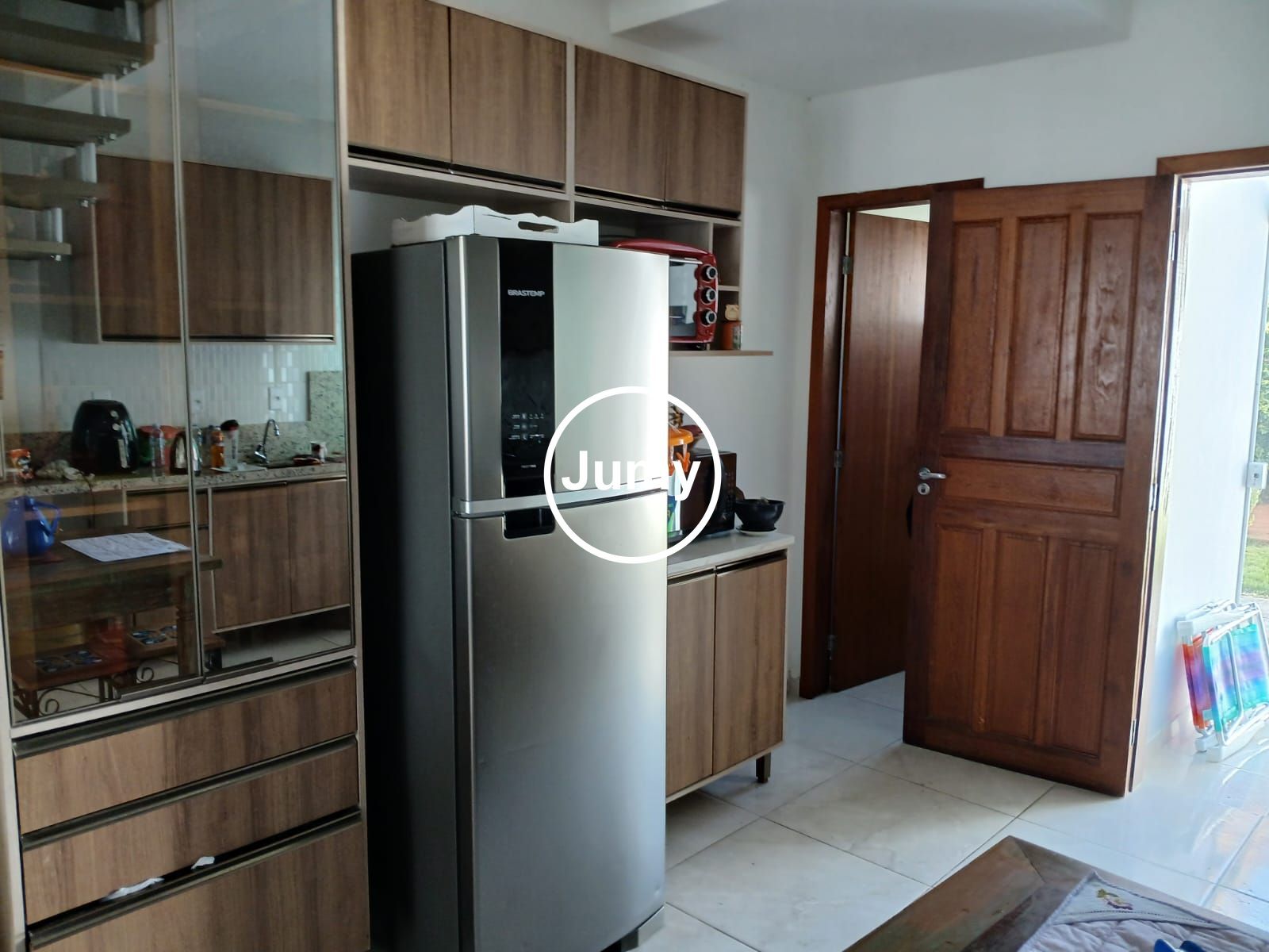 Cozinha equipada com todos eletrodomésticos, integrada à sala de jantar