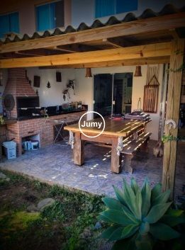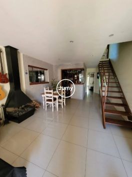 A casa é toda mobiliada, são 2 andares, no primeiro piso, sala de estar, jantar e convivência, cozinha equipada, todos os cômodos em conceito aberto, amplos e bem ventilados com muita luz natural, cozinha ampla com mobília, área de serviço; espaço gourmet com bar, churrasqueira e pia, um banheiro social. Já o Segundo Pavimento dispõe de dois (02) dormitórios, (01) um banheiro social, uma sala de spar com banheira de hidromassagem e lareira.