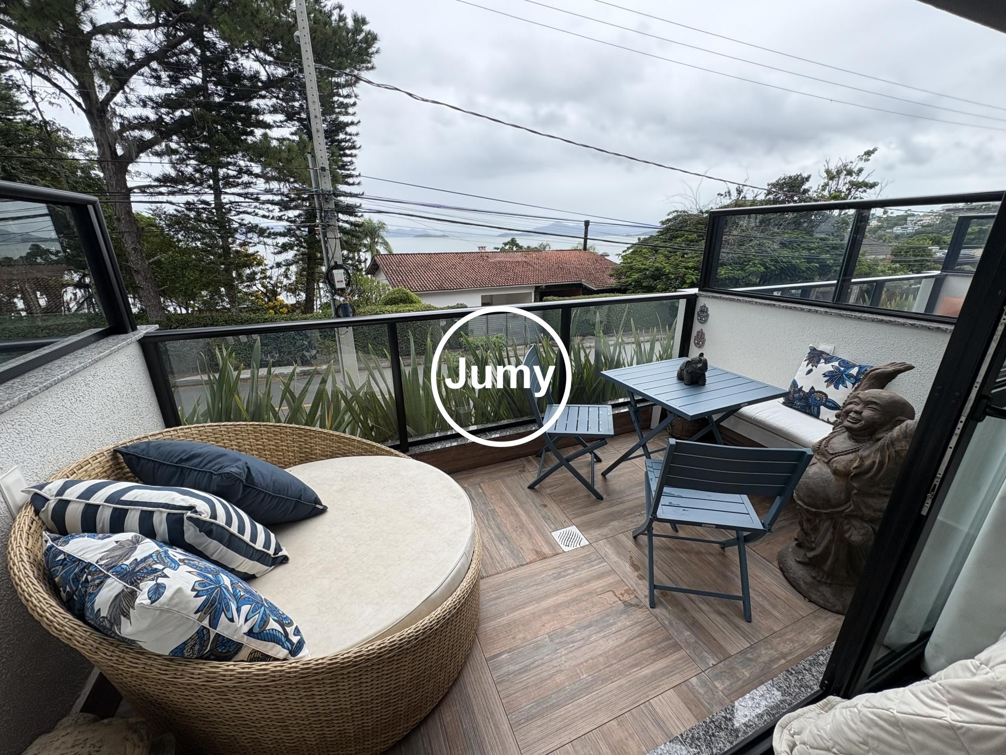 Um dos destaques do imóvel é a sacada, um espaço agradável e mobiliado, ideal para momentos de descanso, com uma bela vista para o mar e para a natureza ao redor, característica marcante do bairro Cacupé.