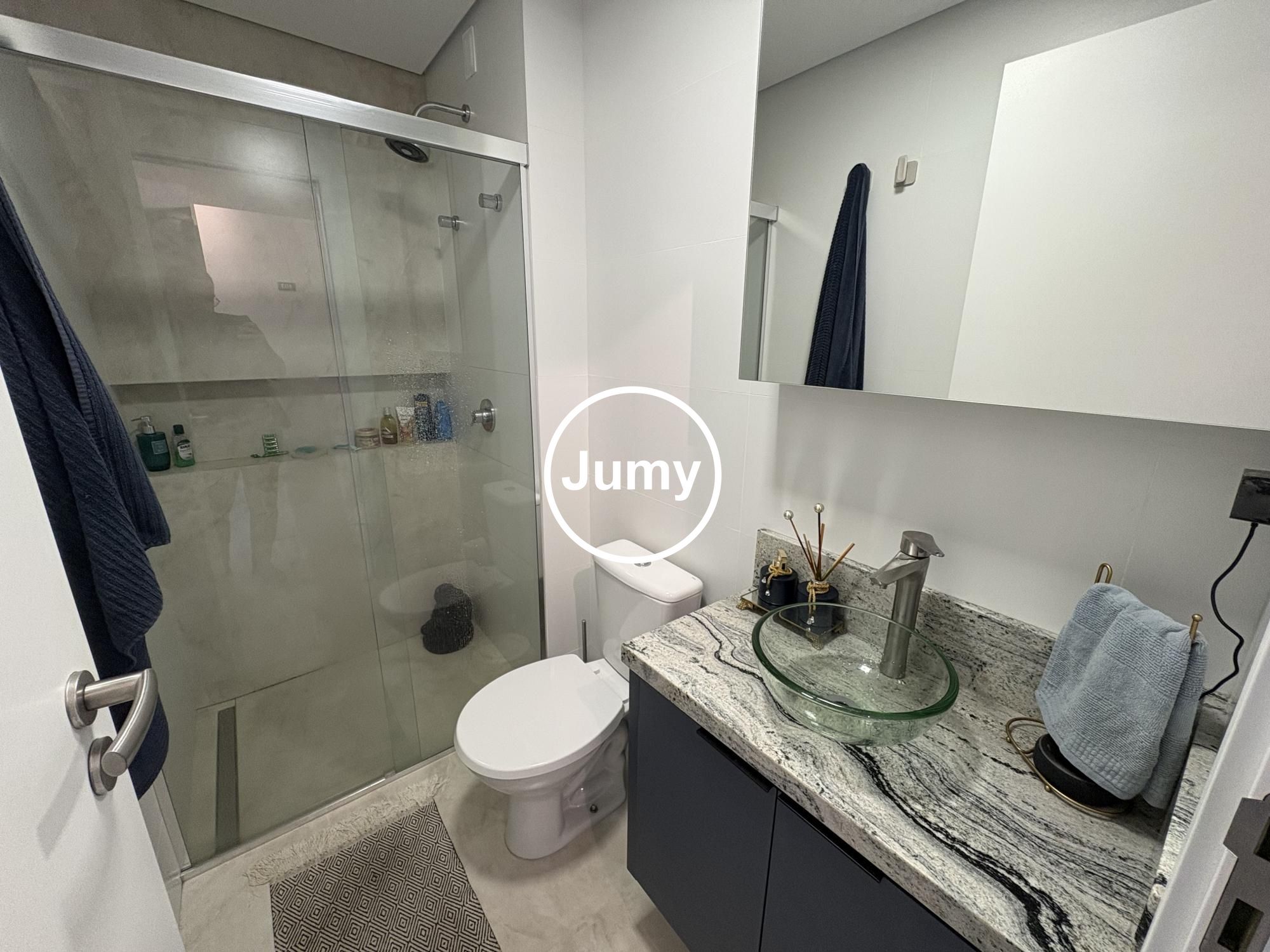 O espaço do dormitório é confortável e bem organizado, também mobiliado e com armário amplo, proporcionando praticidade no dia a dia. O studio dispõe ainda de banheiro completo e ambientes bem iluminados, valorizando o conforto e a funcionalidade.