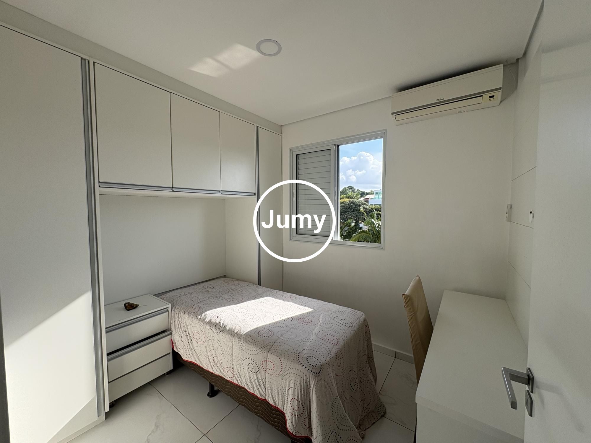 Os dormitórios são bem organizados, com móveis planejados que otimizam o espaço, além de ar-condicionado para maior conforto. O banheiro social atende perfeitamente ao dia a dia.