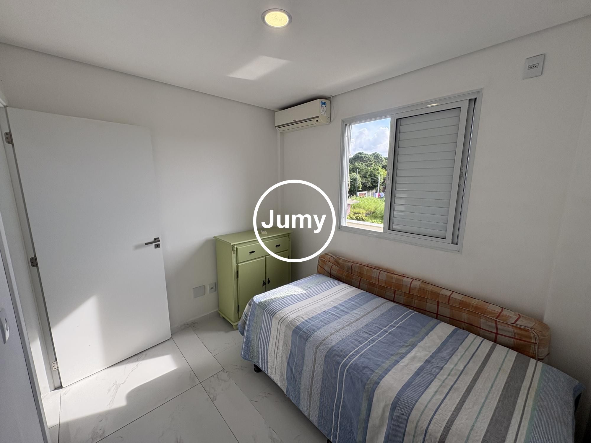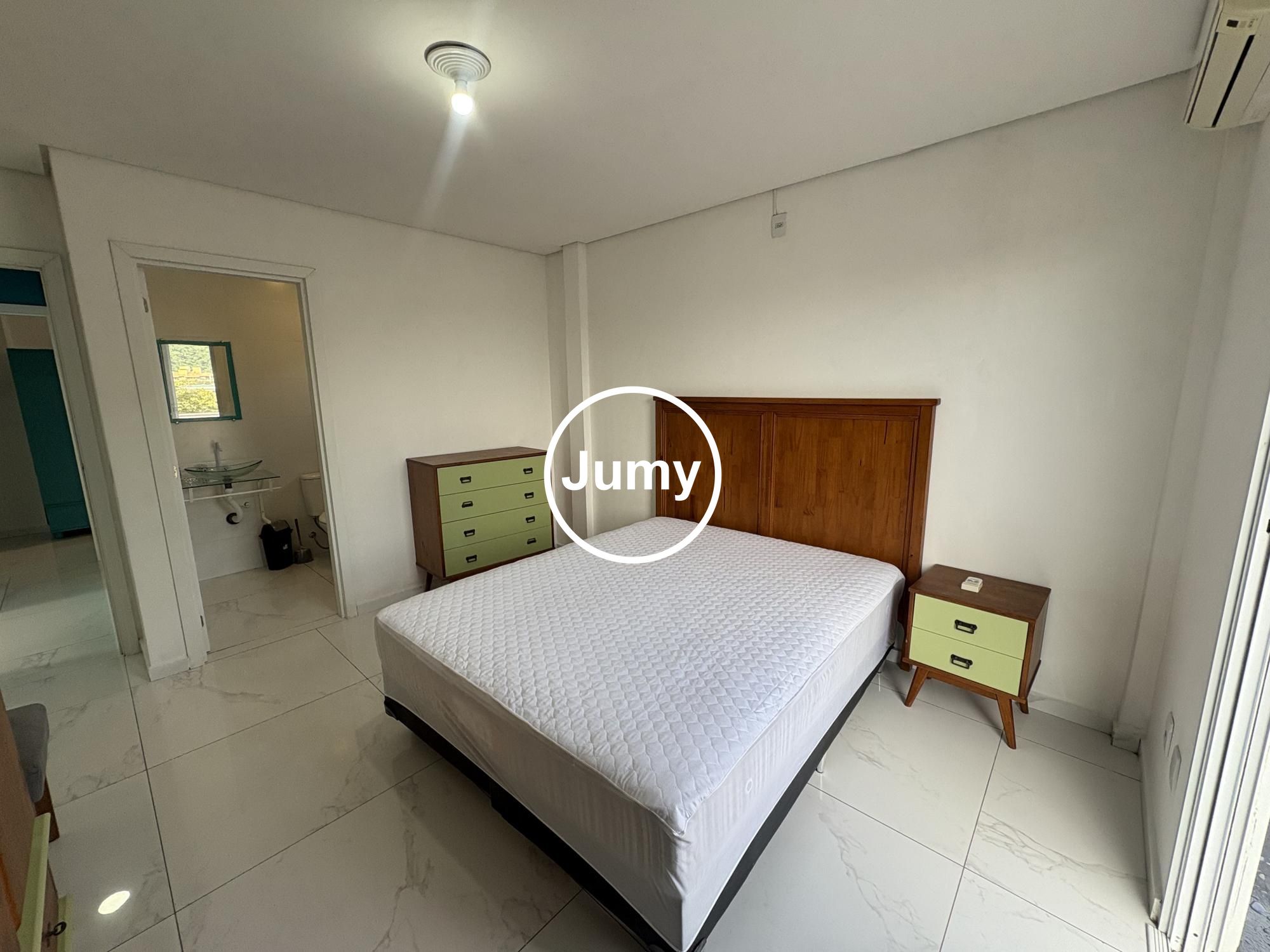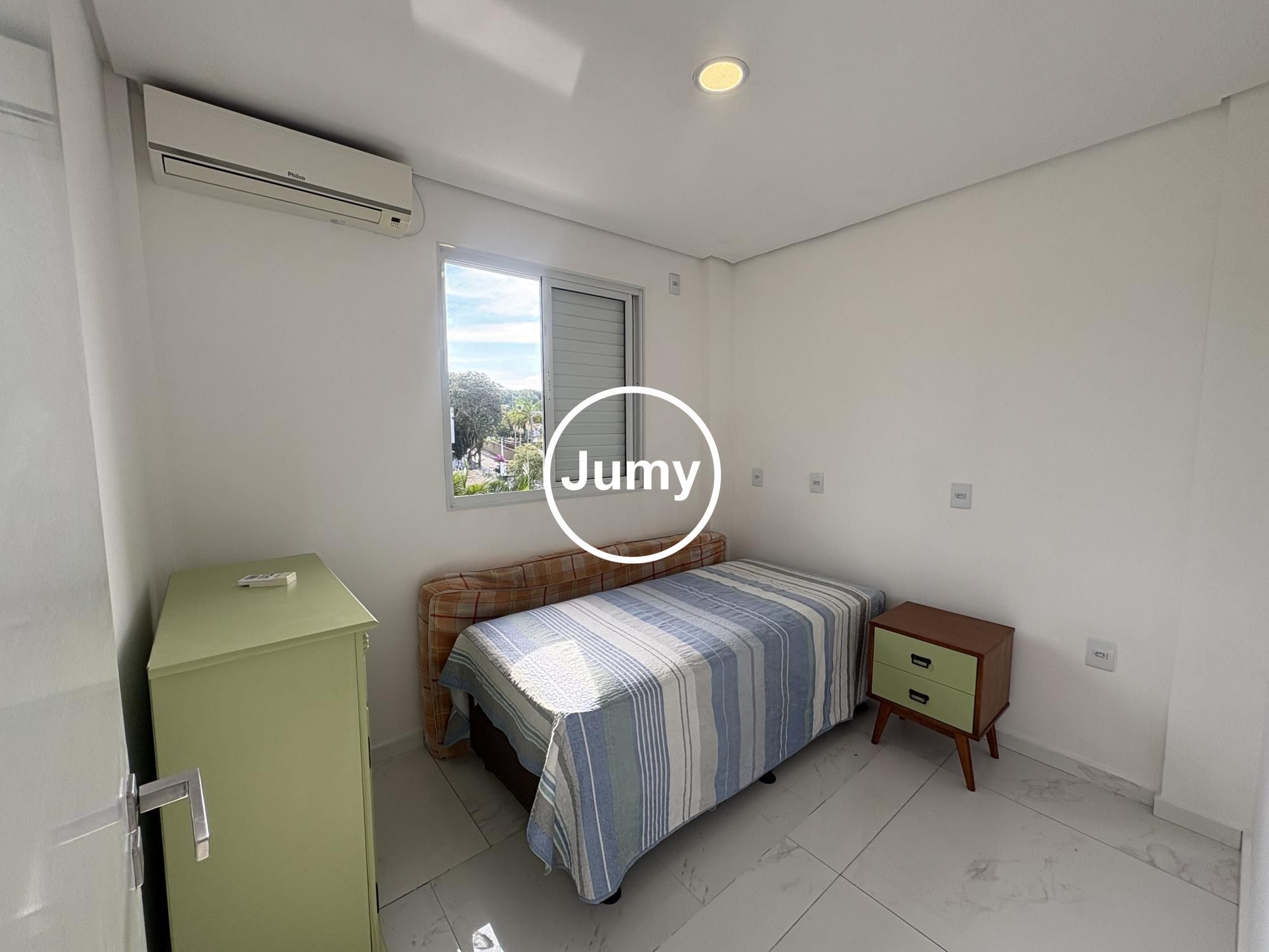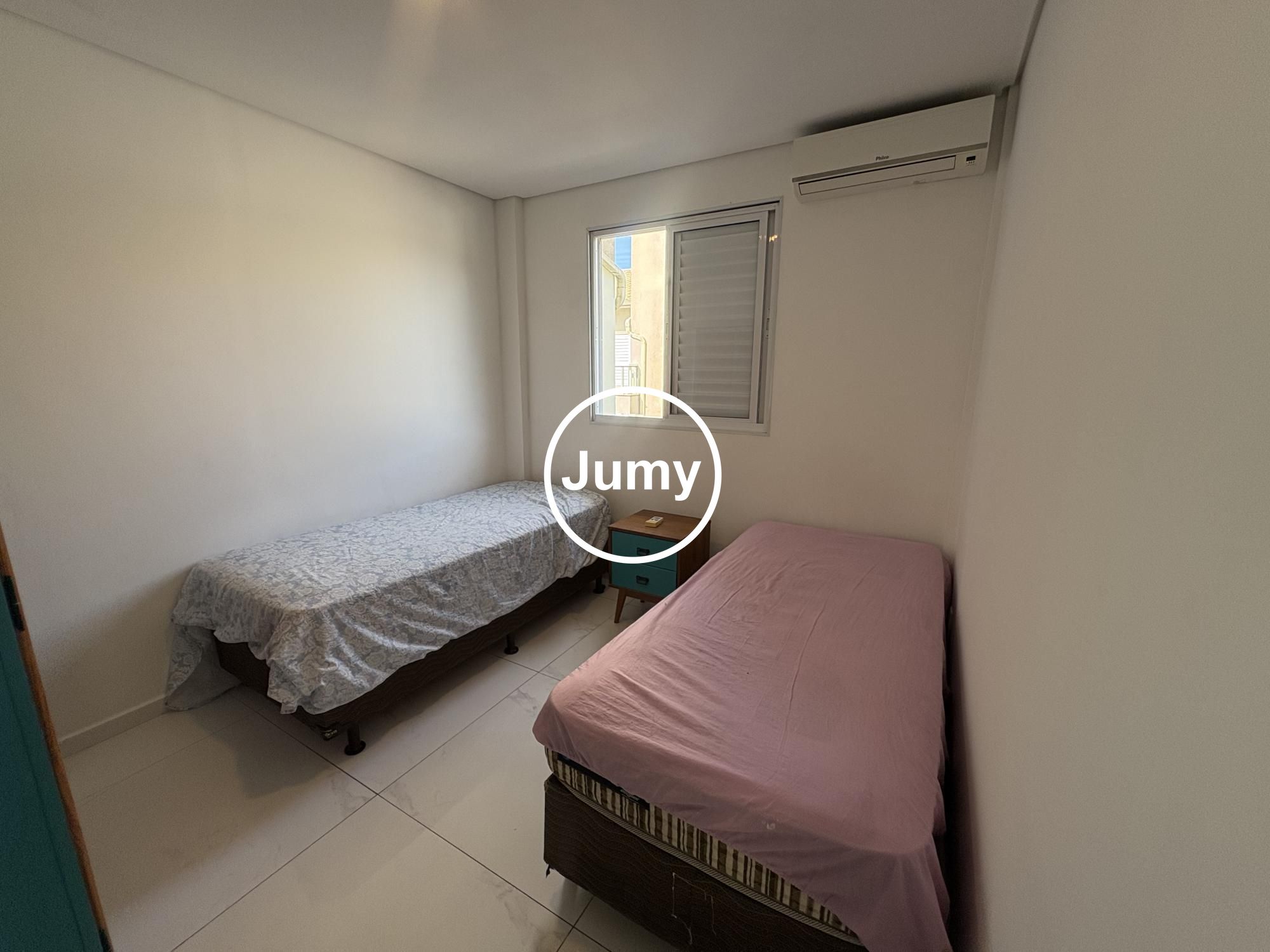 Os dormitórios são bem organizados, com móveis planejados que otimizam o espaço, além de ar-condicionado para maior conforto. O banheiro social atende perfeitamente ao dia a dia.