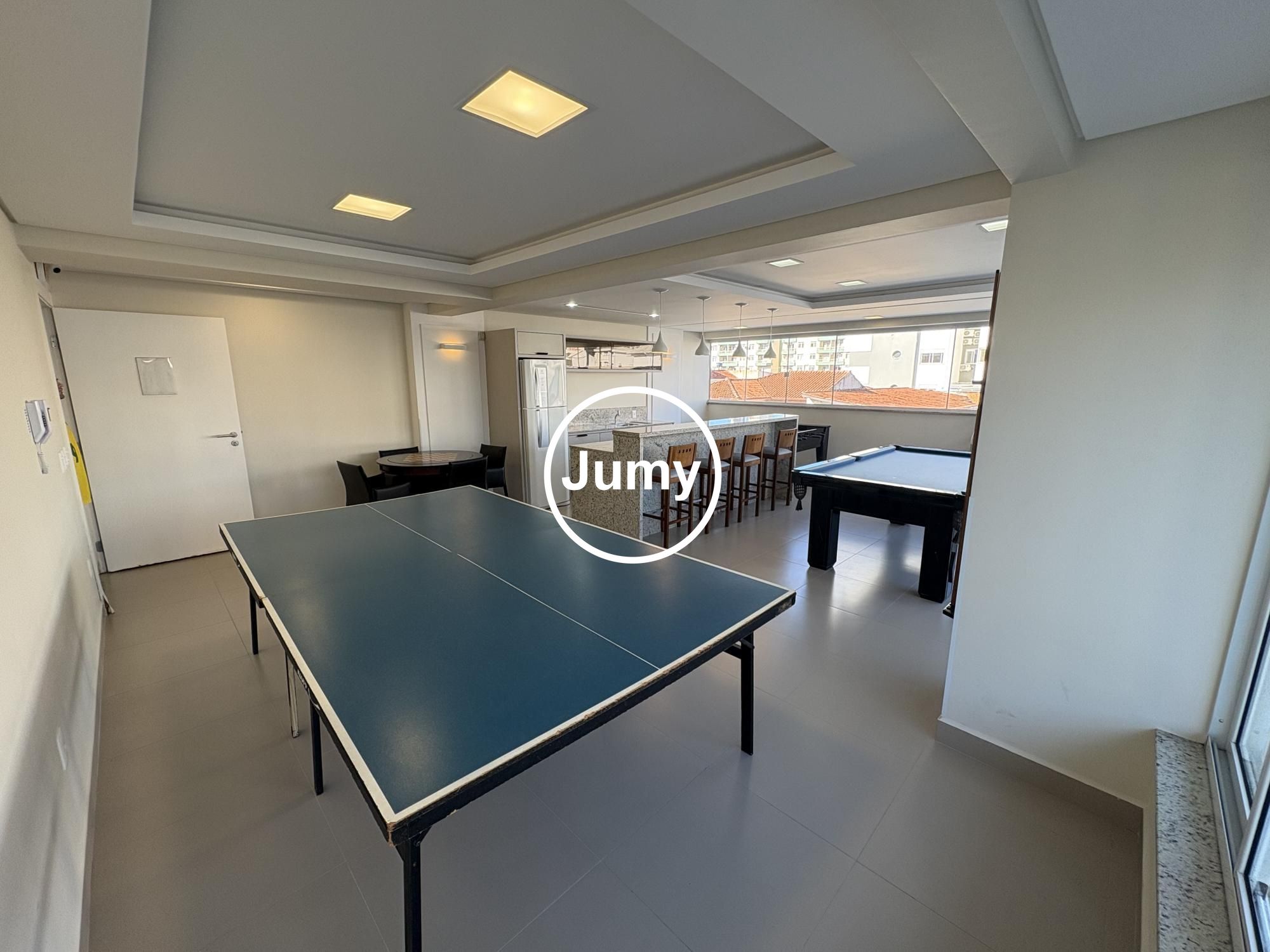 A sacada é espaçosa, com churrasqueira a carvão, perfeita para momentos de lazer, além de proporcionar uma linda vista para o mar. Na área íntima, o imóvel dispõe de dois dormitórios mobiliados, sendo uma suíte, além de um banheiro social. Conta ainda com duas vagas de garagem cobertas.