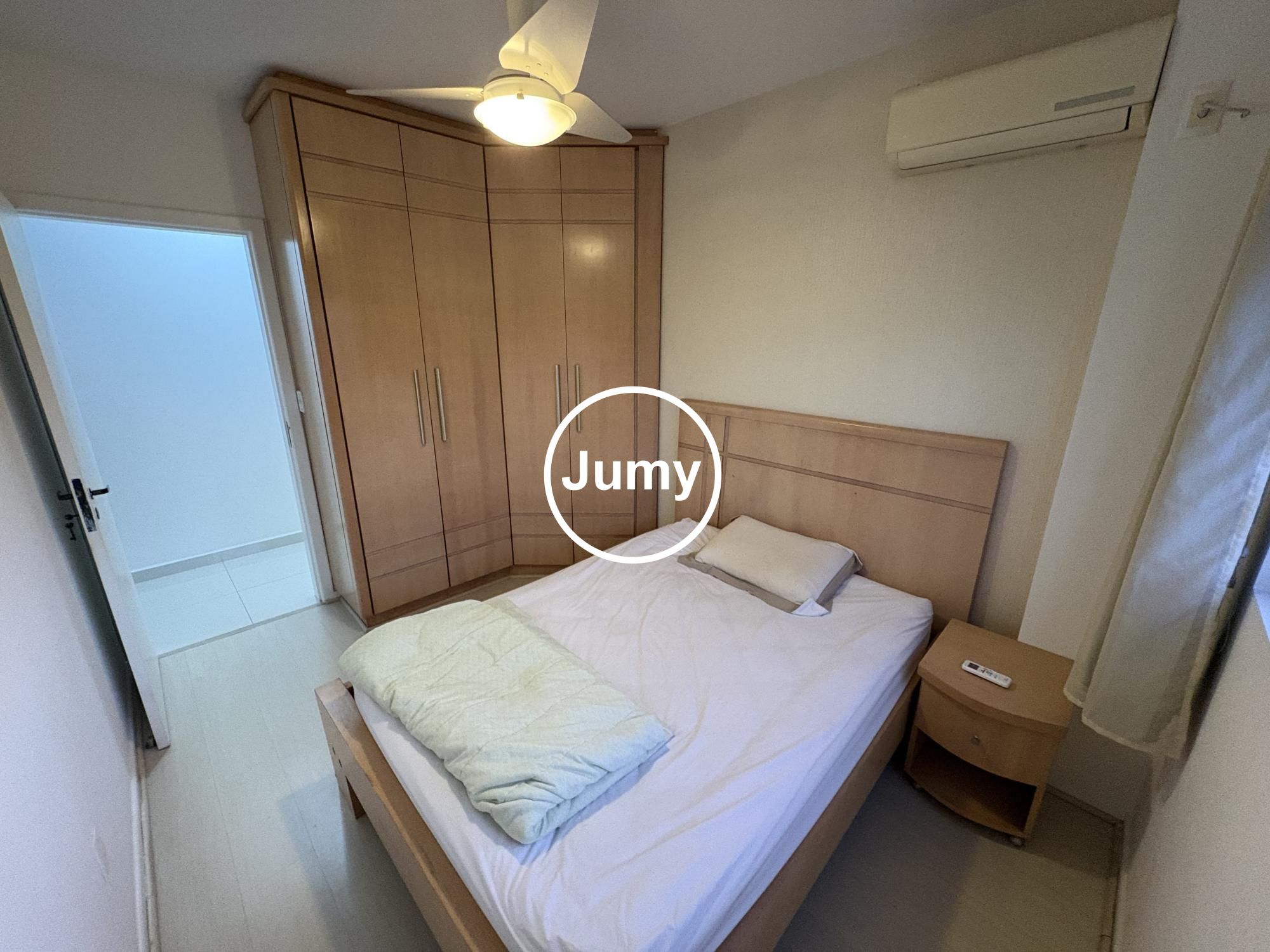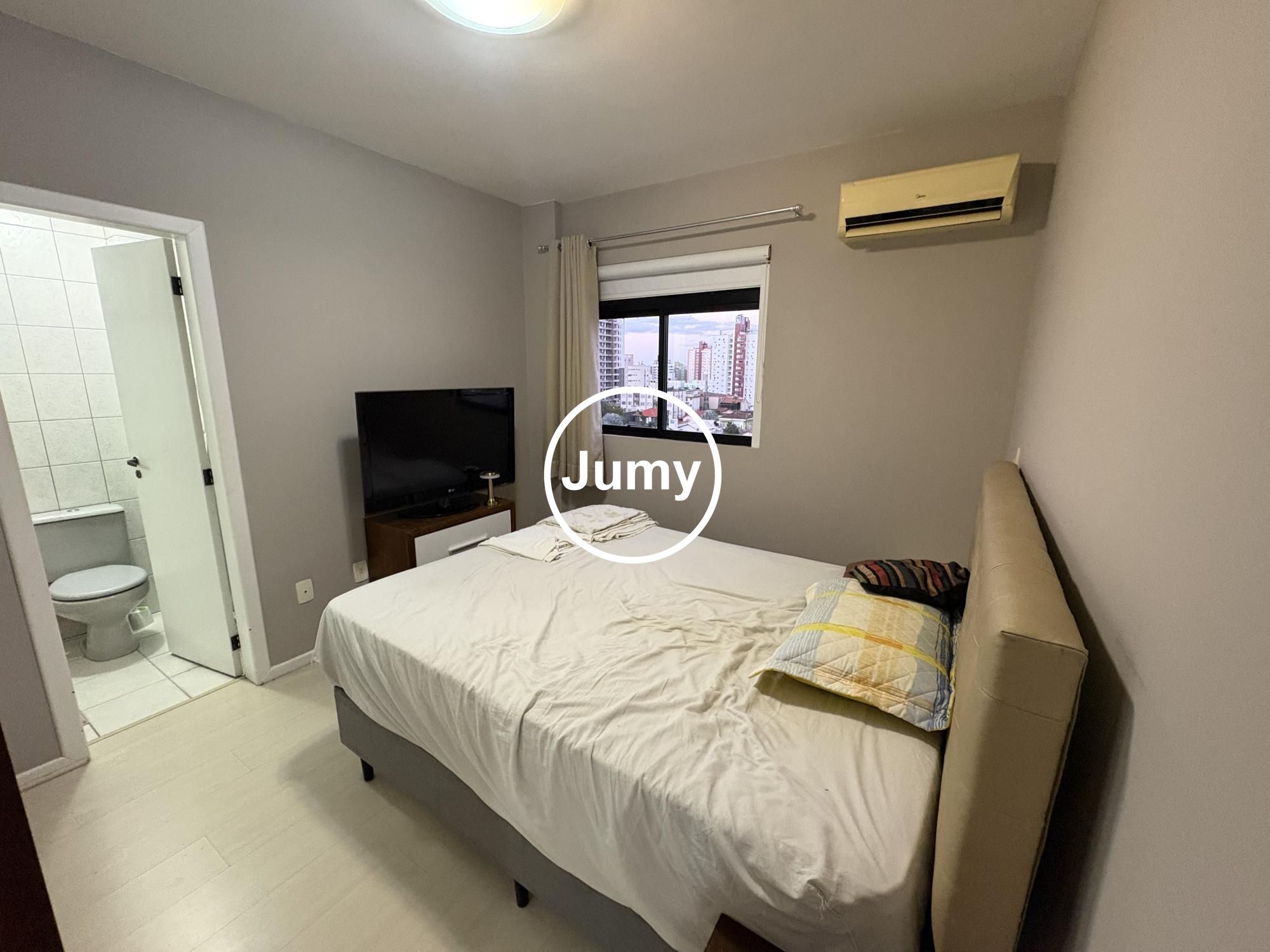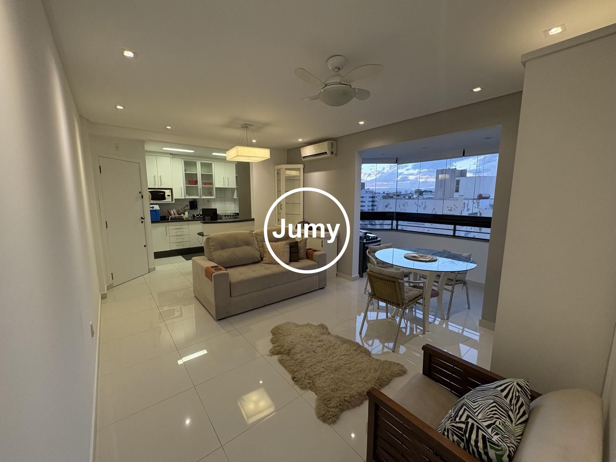 A sacada fechada em vidro oferece uma bela vista e um ambiente extra para momentos de relaxamento. O imóvel possui ar-condicionado em todos os cômodos, garantindo conforto térmico em todas as estações.